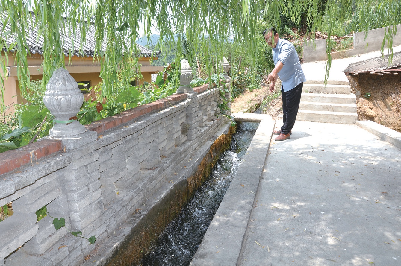 原村支書高傳海望著“五四長渠”涓涓流淌的渠水感慨萬千。