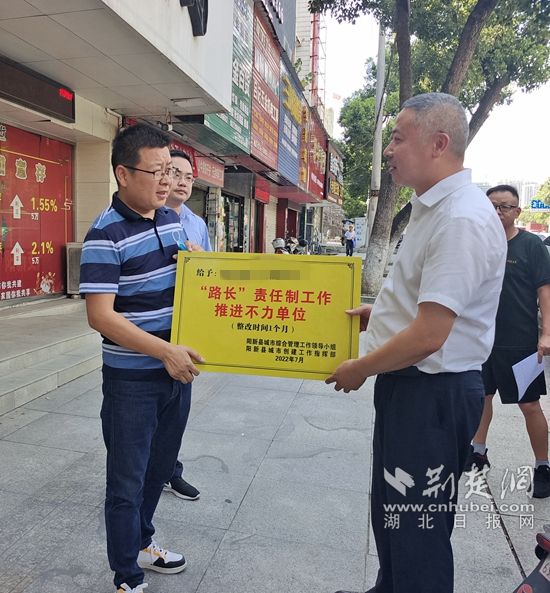 荊楚網(wǎng)(湖北日?qǐng)?bào)網(wǎng))訊(通訊員 許俊孝)陽(yáng)新縣城管局7月22日表示,為著力構(gòu)建城市共建共管、全民共創(chuàng)共享工作新格局,助力新型城鎮(zhèn)化示范縣建設(shè)和國(guó)家文明城市創(chuàng)建,陽(yáng)新縣對(duì)“路長(zhǎng)”和“門(mén)前三包”兩項(xiàng)城市眾管工作機(jī)制責(zé)任單位實(shí)施“黃牌”警示制度。目前,已有4家單位因連續(xù)兩個(gè)月考核不達(dá)標(biāo)“榮獲”此牌,并掛牌督辦,另有六家單位獲得“示范單位”金牌榮譽(yù)。