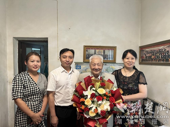 荊楚網(wǎng)(湖北日報網(wǎng))訊(記者王焱堯、金康 通訊員汪麗平、程子瑩)8月1日,鄂州市政協(xié)副主席余子悅一行,前往百歲抗戰(zhàn)老兵譚天健老人家中,祝賀譚老百歲壽辰。此前,鄂州市委統(tǒng)戰(zhàn)部也向譚老發(fā)去百歲壽辰賀信。