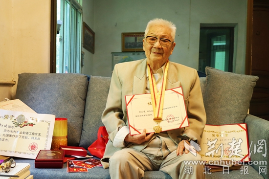 8月1日,在原鄂城水泥廠宿舍,100歲的譚天健老人,身著米色西服,雖滿頭花發(fā)但精神矍鑠,言語中氣十足。