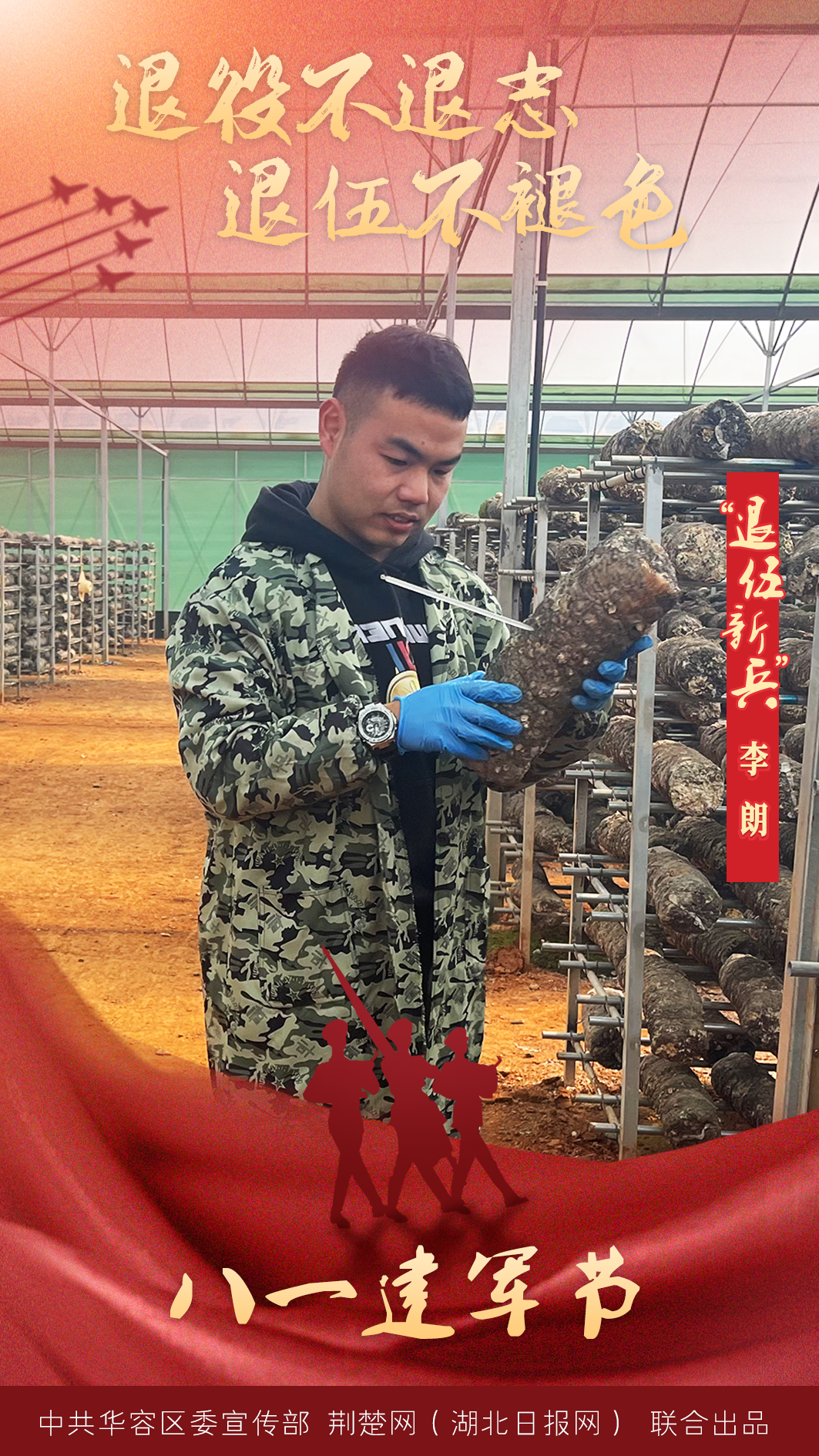 李朗,華容區(qū)廟嶺鎮(zhèn)大葉村人,2018年9月入伍。在部隊,他鍛煉成為一名優(yōu)秀的偵察兵,被授予“四有軍人”光榮稱號。2020年從部隊退伍返鄉(xiāng)后,李朗選準人工培植香菇項目開始創(chuàng)業(yè),并成立“鄂州市林朗菌業(yè)專業(yè)合作社”。