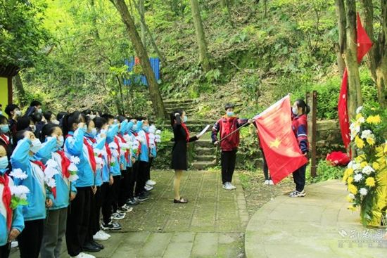 省級文明校園”市一中學生參加清明祭英烈活動。通訊員 供圖