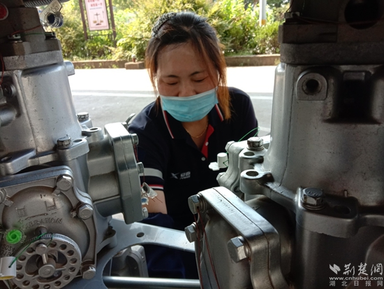 白塔巖站站長(zhǎng)胡慧妍檢查加油機(jī)。通訊員 供圖