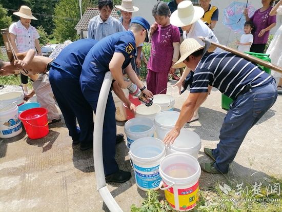 荊楚網(wǎng)(湖北日?qǐng)?bào)網(wǎng))訊(通訊員 王畢勇 譚文)8月15日上午,當(dāng)?shù)弥⑸娇h溫泉鎮(zhèn)羌灣村兩個(gè)村民小組群眾吃水困難后,英山縣應(yīng)急局迅速聯(lián)合縣消防救援大隊(duì)冒著40℃以上的高溫,沿著蜿蜒的山路為該村兩個(gè)小組22戶(hù)65位群眾送去生活用水5噸,受到群眾歡迎。
