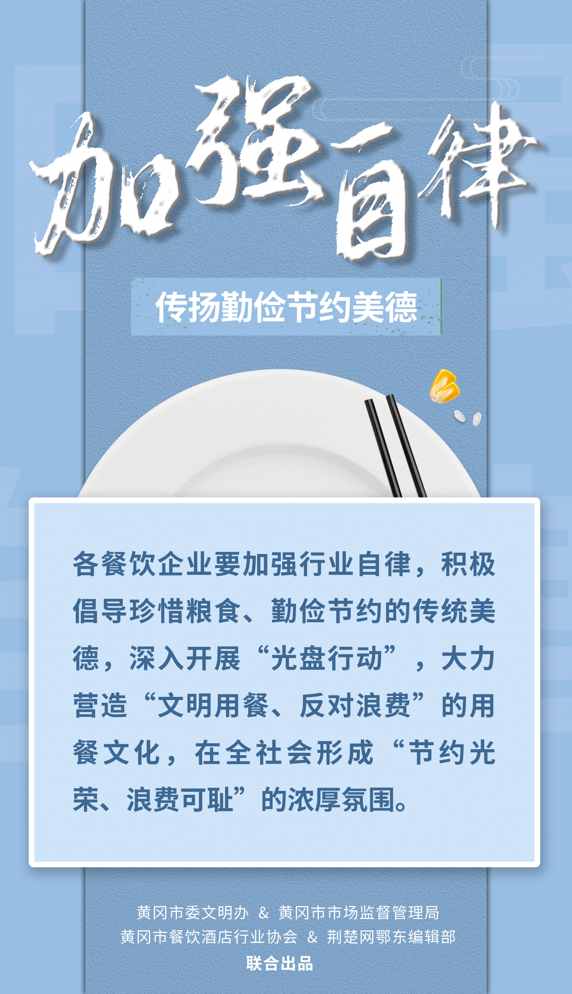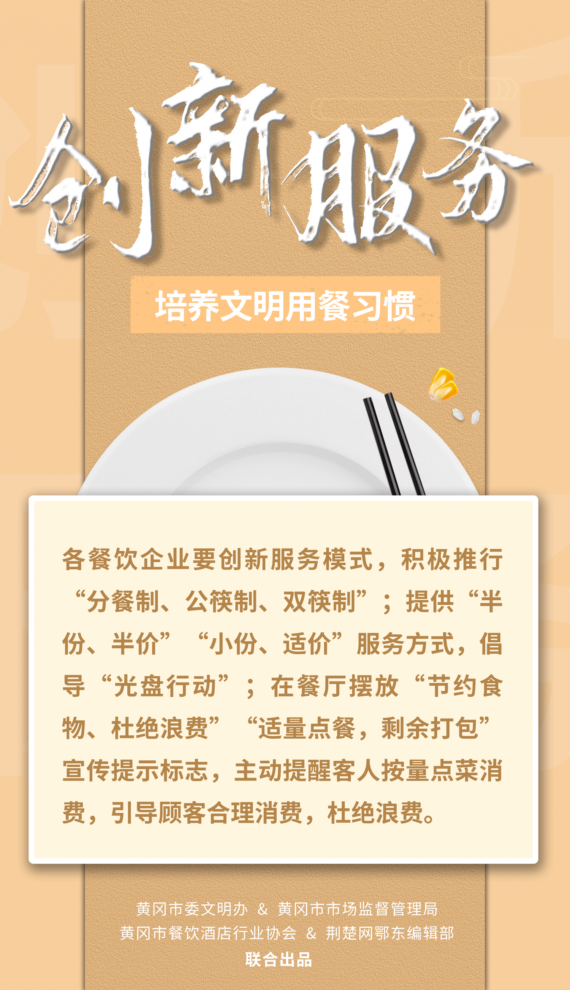 荊楚網(wǎng)(湖北日?qǐng)?bào)網(wǎng))訊(記者陶輝 姜夢(mèng)瑤 通訊員張開(kāi)宇 姜文馨)一粥一飯,當(dāng)思來(lái)之不易。為引導(dǎo)餐飲行業(yè)健康綠色發(fā)展,踐行“文明用餐、反對(duì)浪費(fèi)”時(shí)代新風(fēng),堅(jiān)決制止餐飲浪費(fèi)行為,9月14日,黃岡市委文明辦、黃岡市市場(chǎng)監(jiān)督管理局、黃岡市餐飲酒店行業(yè)協(xié)會(huì)聯(lián)合向全市餐飲行業(yè)、廣大市民朋友發(fā)出倡議。