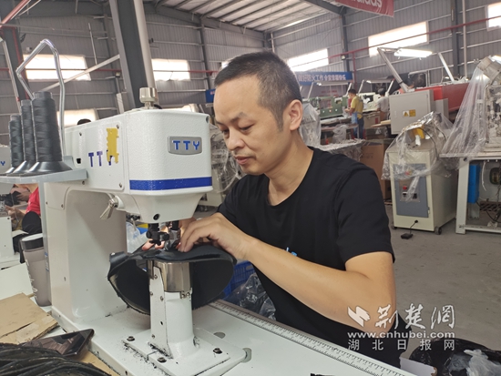 在湖北陽新經(jīng)濟(jì)開發(fā)區(qū)眾源鞋業(yè)有限公司針車車間,這兩位資深鞋匠笑容可掬?!盎貋砹司秃?,萬丈高樓平地起,一切都還來得及!”