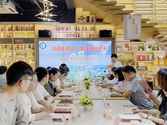 讀書會現(xiàn)場,麻城市第六小學(xué)黨委副書記、全國TCL希望工程燭光獎引領(lǐng)獎獲得者徐能英老師就《閱讀連接美好 攜手播種未來》這一課題作了經(jīng)驗交流,她針對學(xué)生的身心特點,并結(jié)合教學(xué)自身規(guī)律,創(chuàng)新閱讀教學(xué)方法,通過班級圖書角建設(shè)、經(jīng)典誦讀、作詩比賽、暑期游學(xué)等方式,引導(dǎo)學(xué)生形成正確的閱讀動機,激發(fā)讀書的樂趣,教給學(xué)生讀書的方法,培養(yǎng)良好的讀書習(xí)慣,提升學(xué)生的文化底蘊,營造濃厚的學(xué)習(xí)氛圍。