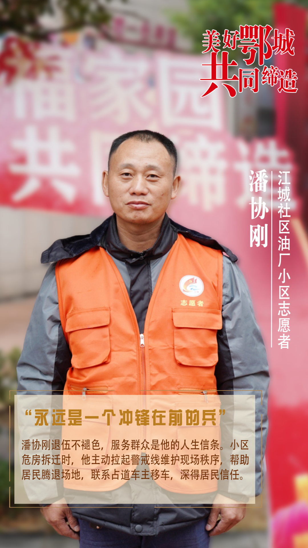 潘協(xié)剛退伍不褪色,服務(wù)群眾是他的人生信條。小區(qū)危房拆遷時,他主動拉起警戒線維護現(xiàn)場秩序,幫助居民騰退場地,聯(lián)系占道車主移車,深得居民信任。