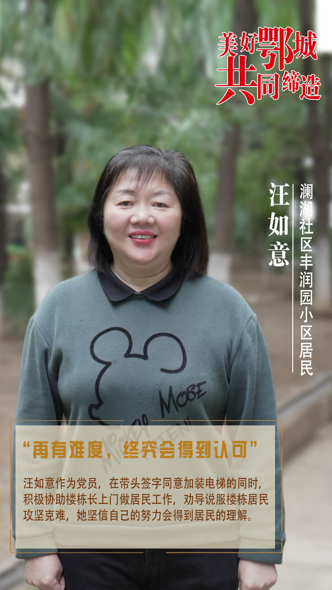 汪如意作為黨員,在帶頭簽字同意加裝電梯的同時(shí),積極協(xié)助樓棟長上門做居民工作,勸導(dǎo)說服樓棟居民攻堅(jiān)克難,她堅(jiān)信自己的努力會(huì)得到居民的理解。
