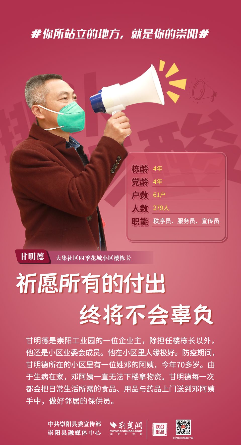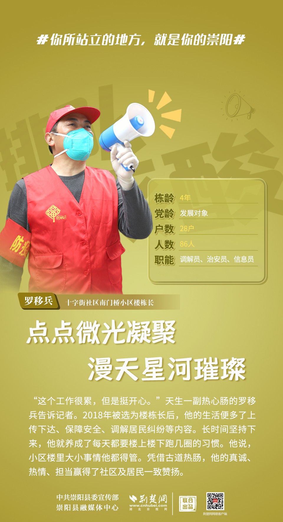 崇陽(yáng)疫情正處于吃勁關(guān)口,你所站立的地方就是你的崇陽(yáng);你怎么樣,崇陽(yáng)便怎么樣;你是什么,崇陽(yáng)便是什么;你積極,崇陽(yáng)就不消極;你熱情,崇陽(yáng)就不冷淡;你有光明,崇陽(yáng)便不再黑暗。疫情面前,沒(méi)有“看客”,更沒(méi)有“局外人”,致敬每一位宅家抗疫的你!