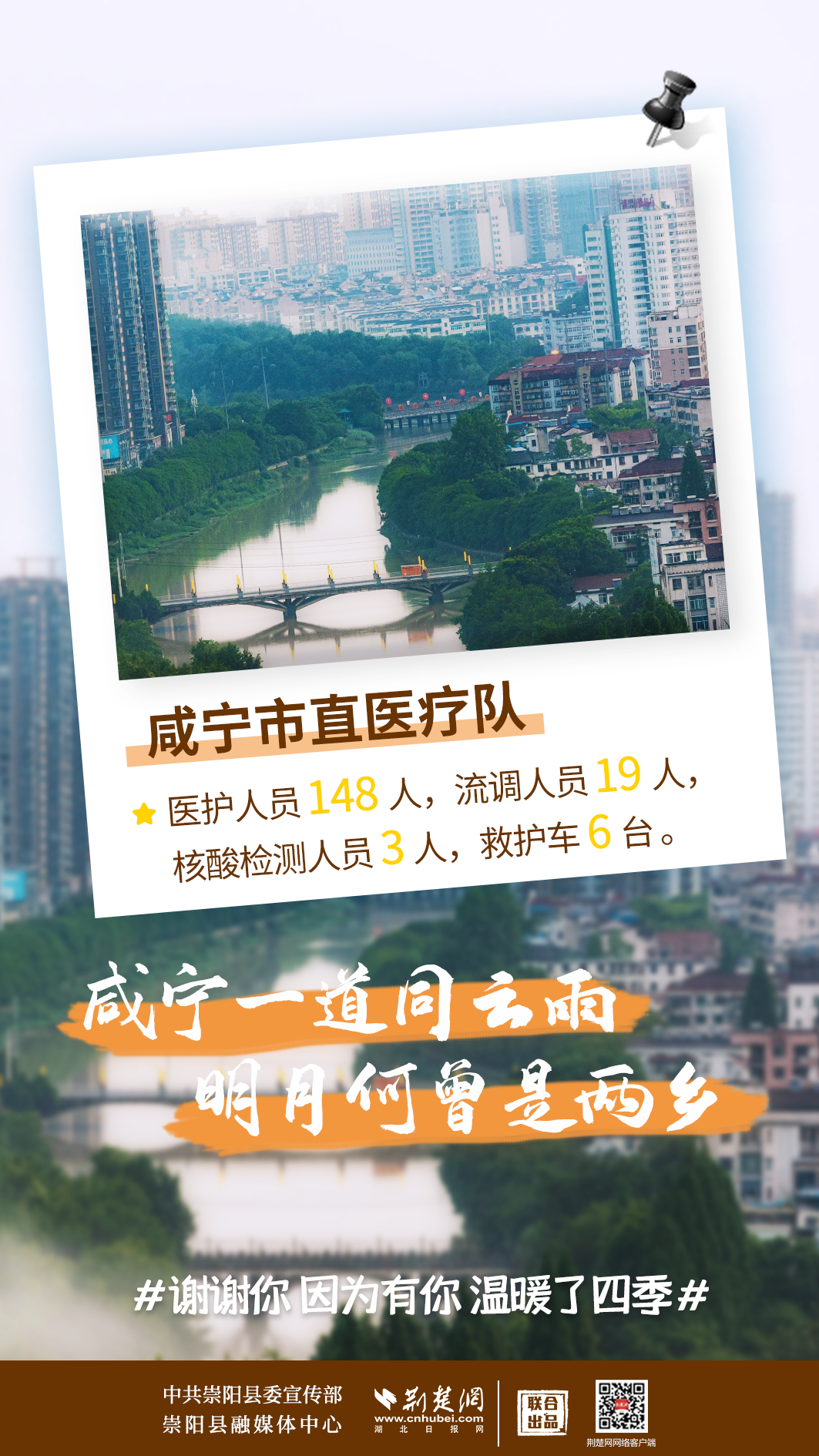 修我甲兵,與子偕行。在崇陽縣疫情防控形勢最嚴(yán)峻、最艱難的時刻,來自咸寧市直、通山縣、通城縣、嘉魚縣4支醫(yī)療隊,489名醫(yī)務(wù)人員,火速支援崇陽抗疫,馬不卸鞍,人不解甲,便同51萬崇陽人民一道相守偕行,并肩作戰(zhàn)。