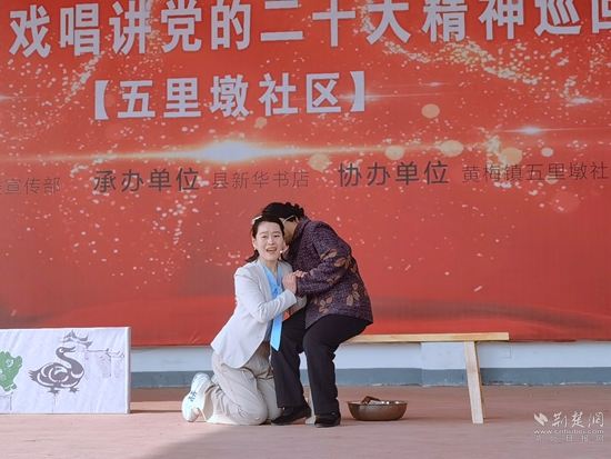 荊楚網(wǎng)(湖北日?qǐng)?bào)網(wǎng))訊(通訊員吳句兵 石勛)“新征程,心連心,肩并肩。偉大時(shí)代,領(lǐng)導(dǎo)核心走在前。懷揣必勝信念,復(fù)興不可逆轉(zhuǎn)……”12月12日,由黃梅縣委宣傳部組建的黃梅唱講黨的創(chuàng)新理論百姓宣講團(tuán),來到該縣黃梅鎮(zhèn)五里墩社區(qū)開展黨的二十大精神巡演。此次巡演吸引了眾多村民圍觀,贏得了現(xiàn)場(chǎng)觀眾的陣陣掌聲。