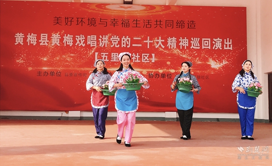 黨的二十大剛剛結(jié)束,黃梅縣就組織農(nóng)業(yè)農(nóng)村局、工會(huì)、文旅局等單位的文藝愛好者,精心創(chuàng)作了一批黃梅戲唱講作品,把言簡(jiǎn)意賅的“書面語”變成娓娓動(dòng)聽的“黃梅戲”,讓老百姓能夠聽得懂、易接受。