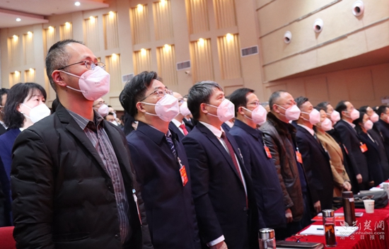 與會(huì)人員齊唱國歌。阮瓊 攝