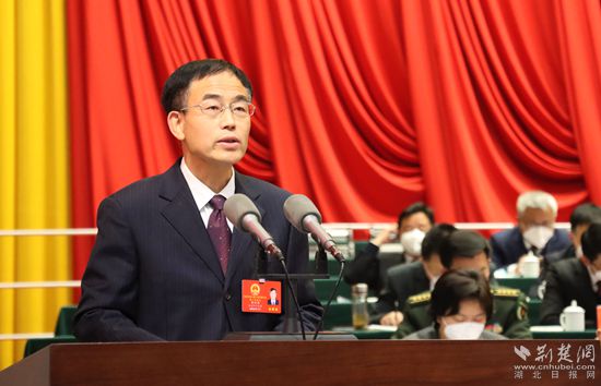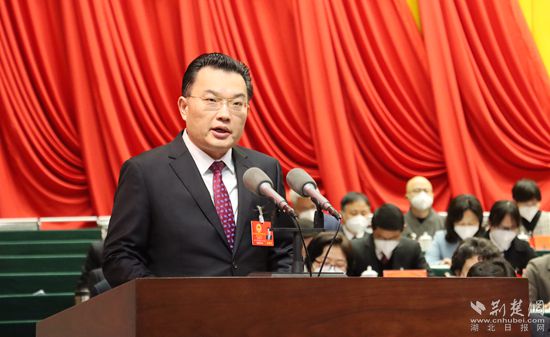 黃岡市人民檢察院黨組書記、檢察長萬強作報告。記者 胡小軍 攝