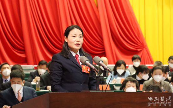 黃岡市中級人民法院黨組書記、代院長文利紅作報告。記者 胡小軍 攝