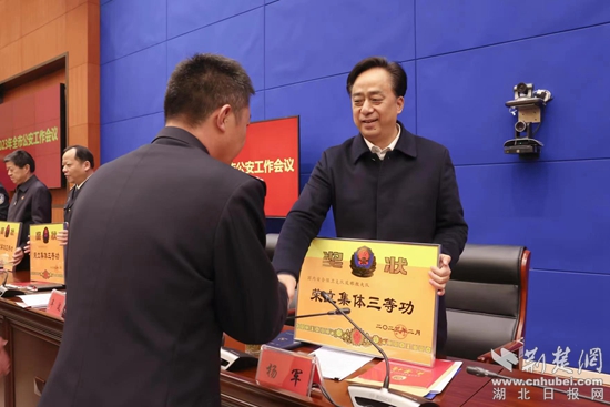 會議由市公安局黨委副書記、副局長牟波主持,市公安局黨委委員、政治部主任陶叢林宣讀了2022年度全市公安機(jī)關(guān)表彰獎勵情況,共通報記功、嘉獎和表彰的個人和集體184個。