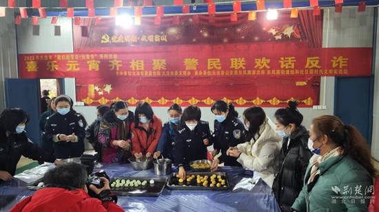 此次活動中,東風(fēng)所民輔警還與社區(qū)干部、居民代表一起做游戲,包湯圓、吃湯圓。大冶公安此次的花式鬧元宵既傳承了中華民族傳統(tǒng)節(jié)日的文化習(xí)俗,又讓群眾在歡樂祥和的節(jié)日氛圍中學(xué)習(xí)了反詐知識,增長了對電信網(wǎng)絡(luò)詐騙危害的認(rèn)識,營造了群眾參與禁毒反詐斗爭的濃厚氛圍。