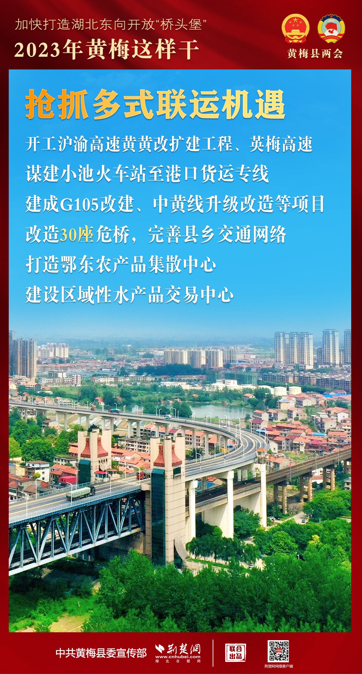 2023年,黃梅將搶抓六大機(jī)遇,提升六個能級,著力發(fā)展節(jié)點、旅游、樞紐、平臺“四大經(jīng)濟(jì)”,敢為實干,提速增效,全面向上,加快著力打造湖北東向開放“橋頭堡”。