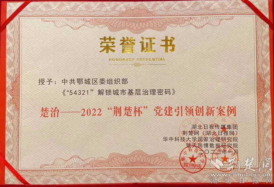 2022“荊楚杯”黨建引領創(chuàng)新案例榮譽證書。通訊員 供圖