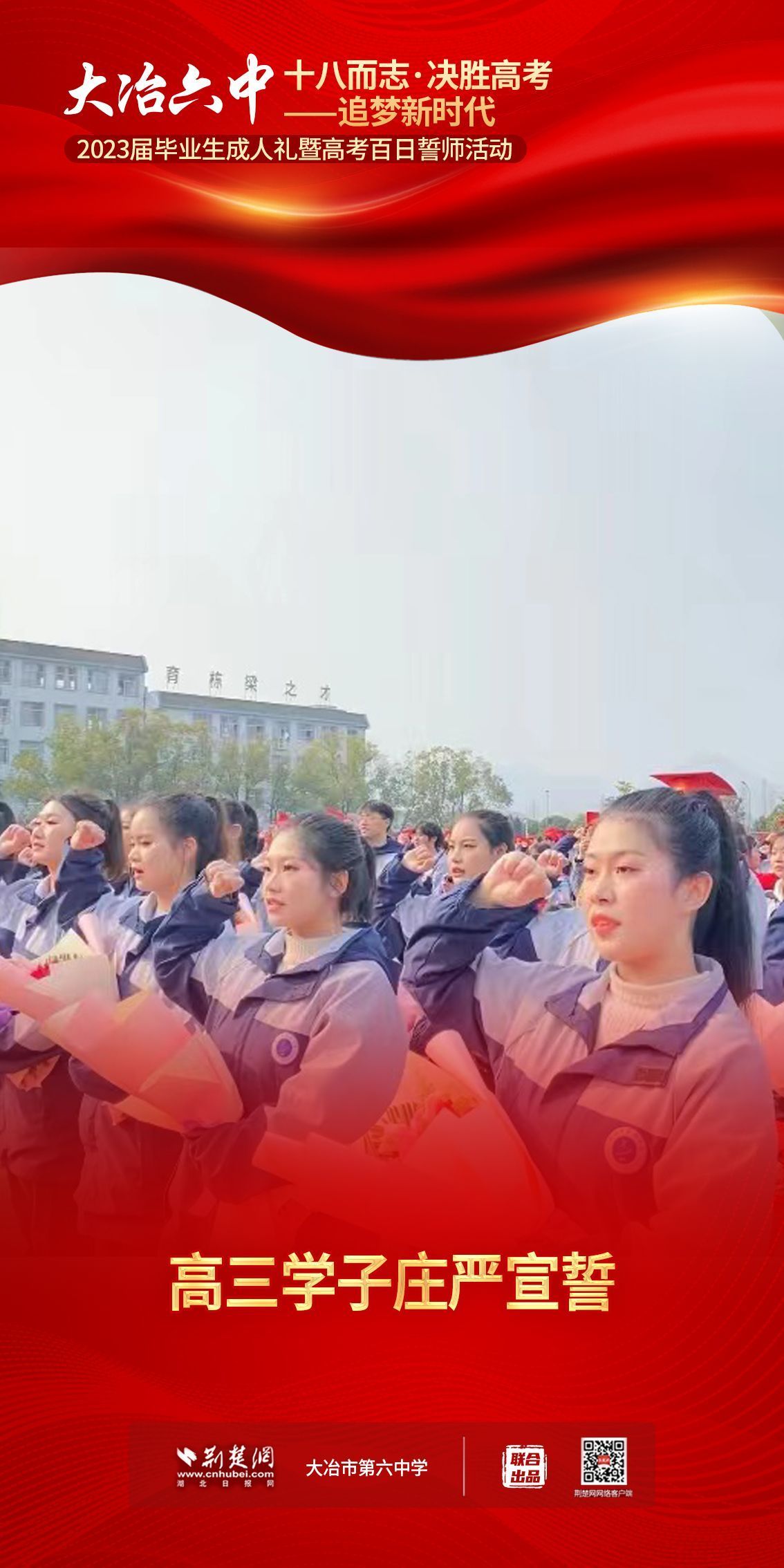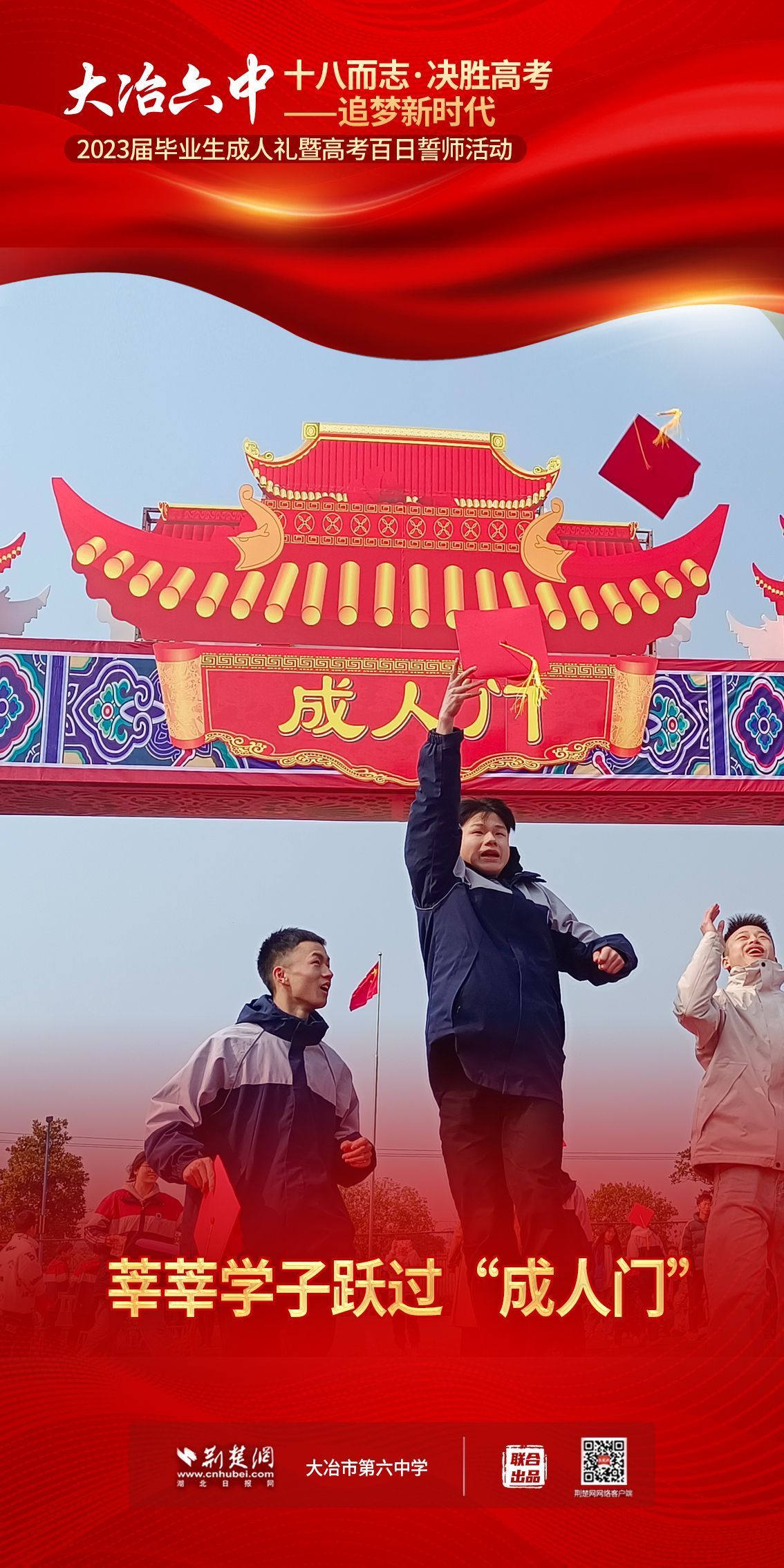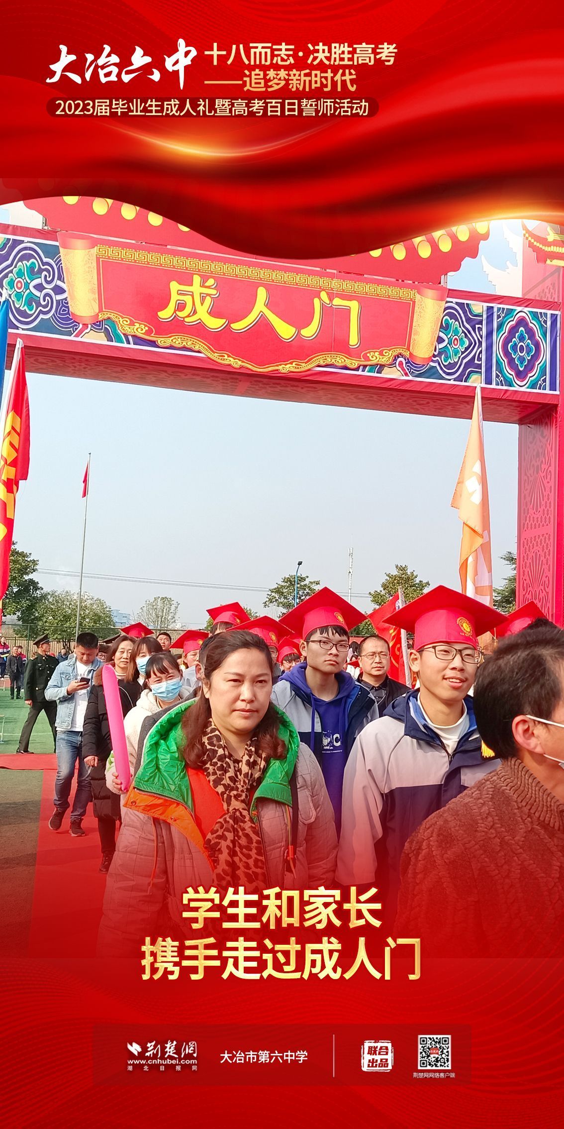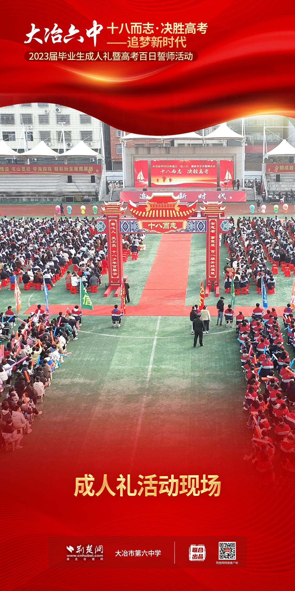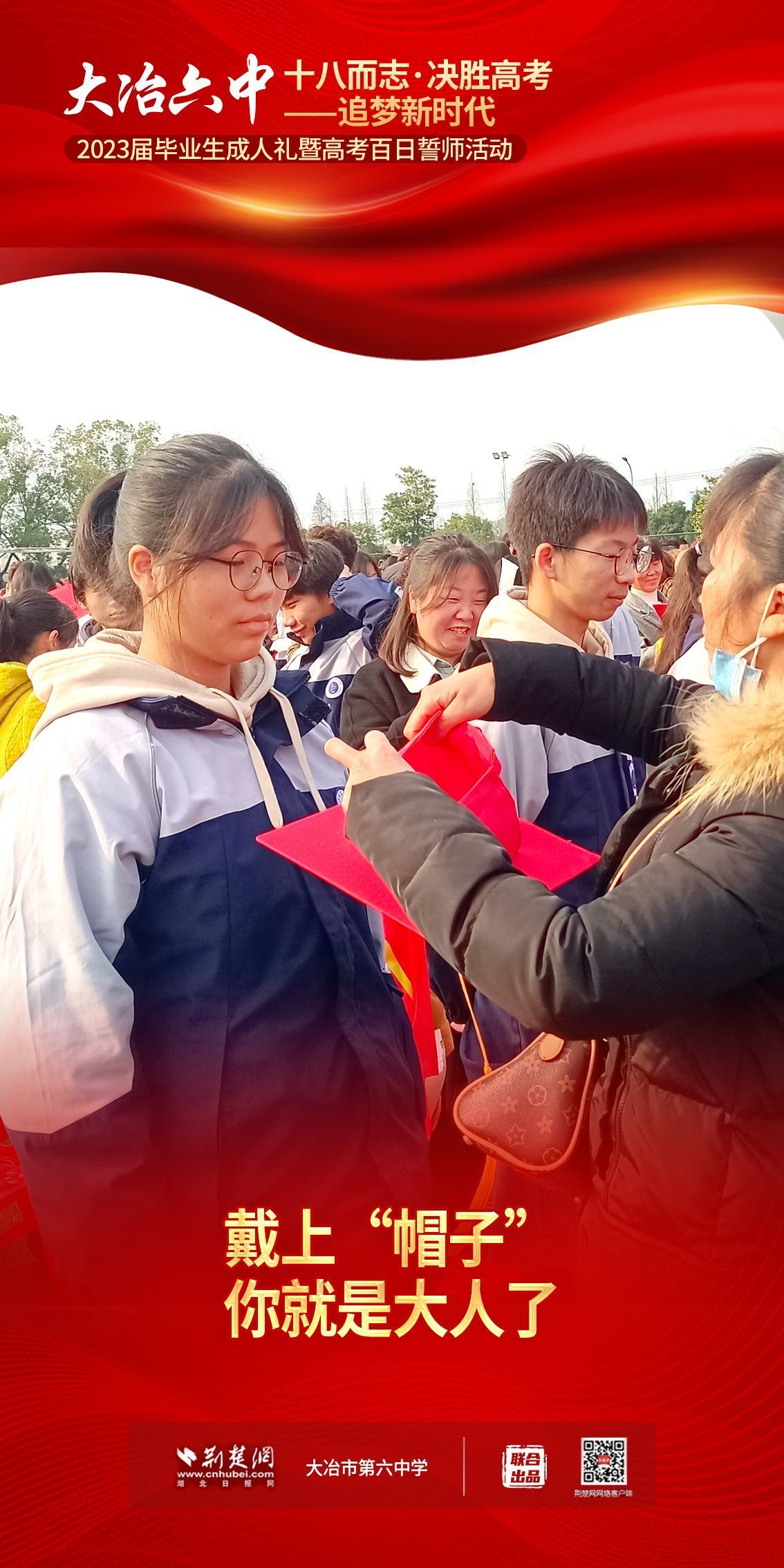 荊楚網(wǎng)(湖北日?qǐng)?bào)網(wǎng))訊(記者 左乙辰 通訊員 吳江濤、任慧)撥穗正冠,禮成!2月25日,大冶市第六中學(xué)3600名學(xué)子和家長(zhǎng)、老師共同見(jiàn)證該校1200名高三同學(xué)十八歲成人儀式,共赴六月的理想征程。