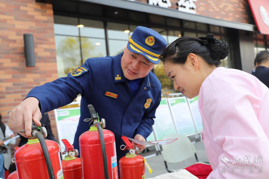 “你可以看下這個滅火器的指針,在紅色區(qū)域,是不能使用的......”消防宣傳人員對群眾說到。在宣傳活動現(xiàn)場,消防宣傳人員與前來咨詢的市民進行交流,認真回答他們提出的關(guān)于消防產(chǎn)品購買、使用及真假認別等方面的各種問題,通過優(yōu)劣產(chǎn)品實物對比、向市民群眾講解消防產(chǎn)品知識。