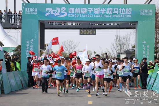 2023鄂州梁子湖半程馬拉松開跑時刻。通訊員 供圖