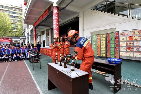 4月12日,黃石市黃石港區(qū)廣場路小學(xué)“突發(fā)火災(zāi)”,伴隨著急促的警報聲,全校2800余名師生以及2名行動不便的學(xué)生,在老師和消防救援人員的組織引導(dǎo)下迅速疏散到安全地帶。