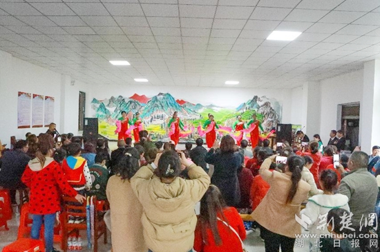 荊楚網(wǎng)(湖北日報網(wǎng))訊(通訊員毛紅平 吳月兵 胡彩明)和風(fēng)送溫暖,春雨潤心田。4月22日,天空下著小雨,在紅安縣覓兒寺鎮(zhèn)普安橋的文化禮堂,里面一片熱鬧非凡,全鎮(zhèn)20多個村的群眾冒著小雨,爭相趕集文化匯演。