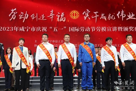 李志強(qiáng)(左三)榮獲咸寧五一勞動(dòng)獎(jiǎng)?wù)隆|S錚 攝