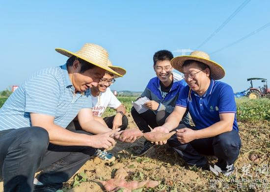 荊楚網(wǎng)(湖北日?qǐng)?bào)網(wǎng))訊(通訊員毛紅平 劉新輝)5月22日,國(guó)家馬鈴薯產(chǎn)業(yè)技術(shù)體系崗位科學(xué)家、華中農(nóng)業(yè)大學(xué)蔡興奎副教授和入駐“紅安紅薯科技小院”的碩士研究生劉訓(xùn)龍、曲玉陽(yáng)來(lái)到紅安縣瑞灃種植養(yǎng)殖合作社紅薯種植基地里,他們拿著筆記本寫寫畫畫,用實(shí)驗(yàn)儀器反復(fù)稱量。