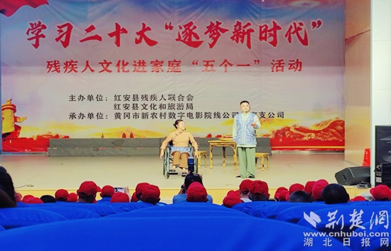 荊楚網(wǎng)(湖北日報網(wǎng))訊(通訊員程應(yīng)良)5月21日,紅安縣殘疾人聯(lián)合會、紅安縣文化和旅游局聯(lián)合舉辦“學習二十大 逐夢新時代”為主題的第二期殘疾人文化進家庭“五個一”活動,幫助殘疾人朋友游一次園、參觀一次展覽、讀一本書、參加一次文化活動、看一場電影。