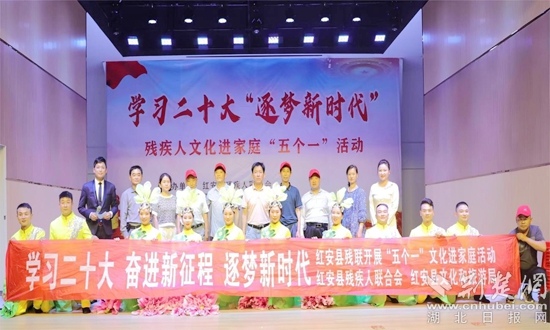紅安縣殘聯(lián)理事長阮俊介紹,開展"殘疾人文化進家庭"五個一"系列活動,是為了幫助殘疾人走出家門,融入社會,共享社會文明和經(jīng)齊發(fā)展成果,不斷豐富殘疾人精神文化生活,進一步教育和引導(dǎo)了廣大殘疾人堅定信念,提高殘疾人獲得感和幸福感。