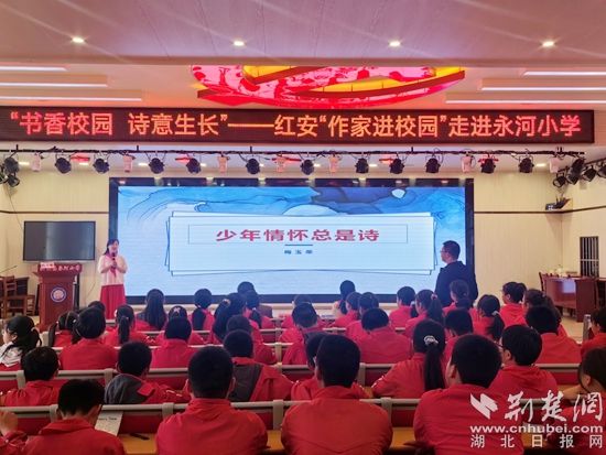 荊楚網(湖北日報網)訊(通訊員毛紅平 董改 劉志勇)5月24日,紅安縣文聯、紅安縣作家協(xié)會組織作家走進永河小學,開展一場主題為“名作家小作者、大手牽小手、作家進校園”的文學志愿服務活動。旨在培育文學人才,推進全民閱讀,弘揚詩歌文化,在校園播下文學的種子。