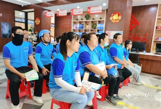 社區(qū)網(wǎng)格員為“藍(lán)騎士”們發(fā)放消防安全、預(yù)防溺水、防范詐騙等宣傳資料,動(dòng)員他們?cè)谔嵘陨戆踩雷o(hù)意識(shí)的同時(shí),也通過(guò)優(yōu)質(zhì)文明的配送服務(wù)把“人人講安全 個(gè)個(gè)會(huì)應(yīng)急”的理念傳遞給更多人。
