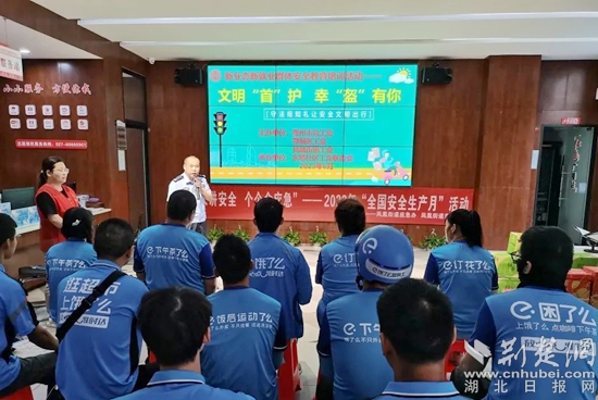 活動(dòng)特別邀請(qǐng)市公安局交通管理局五大隊(duì)一中隊(duì)鳳凰分隊(duì)的趙錦雄為社區(qū)新業(yè)態(tài)新就業(yè)服務(wù)聯(lián)盟成員單位——“餓了么”長(zhǎng)江天下站的“藍(lán)騎士”們上了一堂精彩又實(shí)用的交通安全教育課。