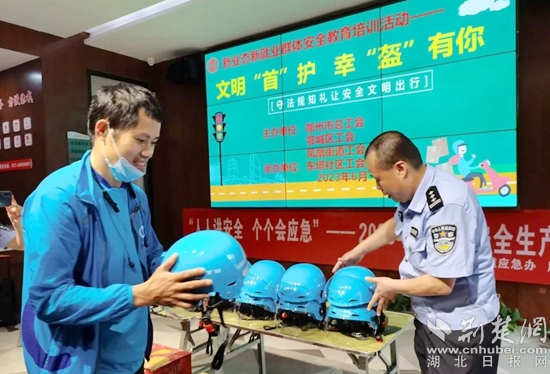 隨后趙警官和社區(qū)志愿者為“藍(lán)騎士”們贈(zèng)送頭盔和愛(ài)心防暑飲品,把工會(huì)組織對(duì)新業(yè)態(tài)新就業(yè)群體的濃濃關(guān)愛(ài)送到小哥們心間,倡導(dǎo)大家在忙碌的送餐服務(wù)中一定要做到“文明騎行,安全配送”,爭(zhēng)當(dāng)文明交通的維護(hù)者、示范者、宣傳者和引導(dǎo)者,用實(shí)際行動(dòng)為城市文明增光添彩。
