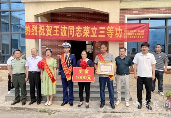 荊楚網(wǎng)(湖北日報(bào)網(wǎng))訊(通訊員 丁元中)愛國奉獻(xiàn)在消防,立功喜訊傳家鄉(xiāng)。6月14日上午,鄂州碧石渡鎮(zhèn)李邊村1組熱鬧非凡,鄂城區(qū)退役軍人事務(wù)局、碧石渡鎮(zhèn)武裝部一行人給榮立三等功的現(xiàn)役軍人王波軍屬送上喜報(bào)和慰問金。