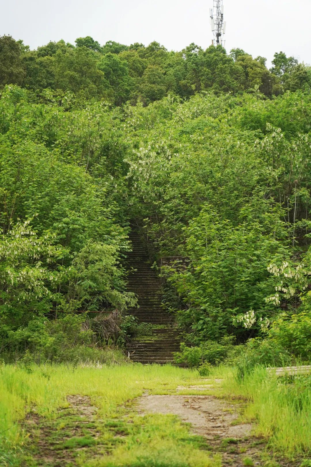 隔著綠樹前后錯(cuò)落