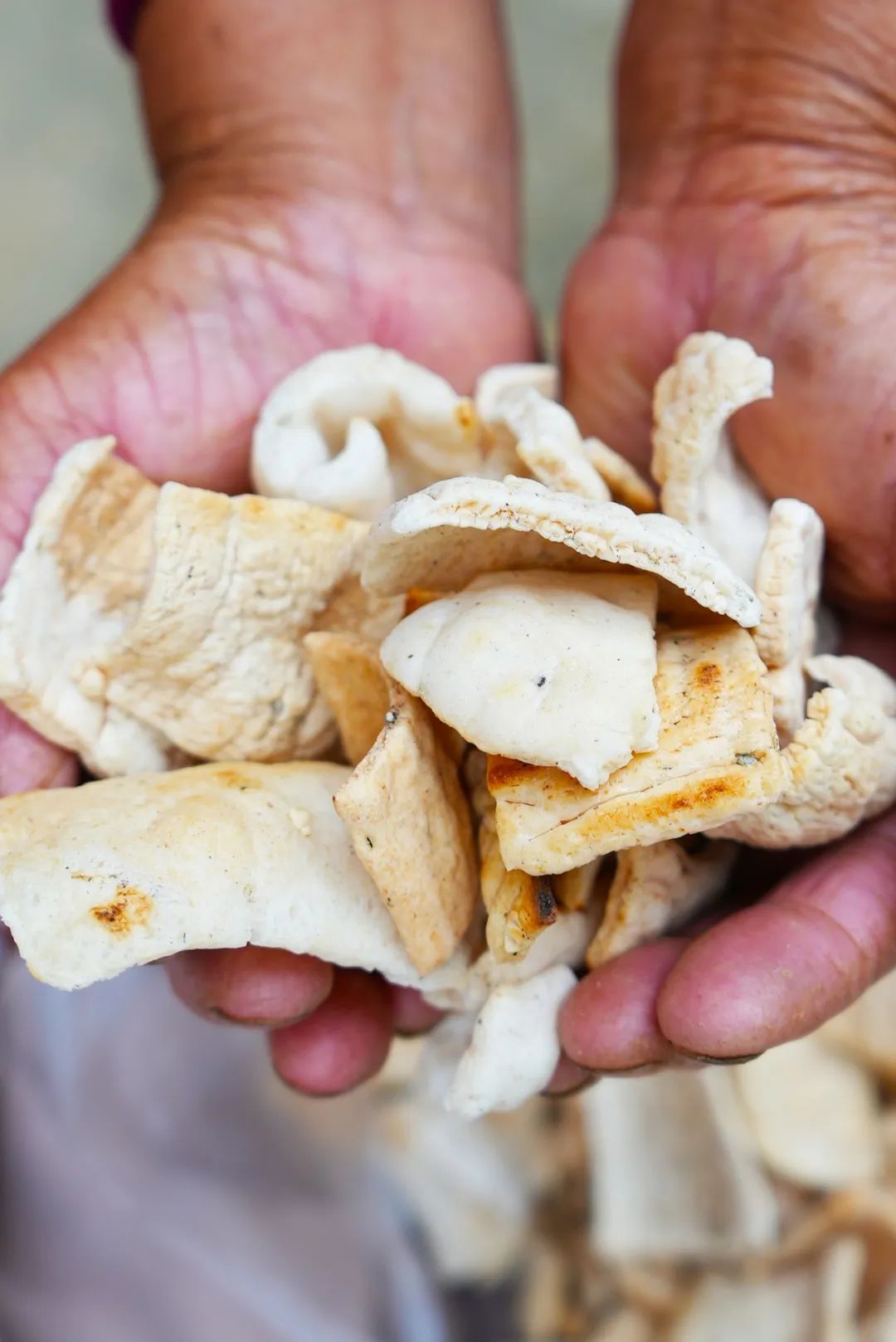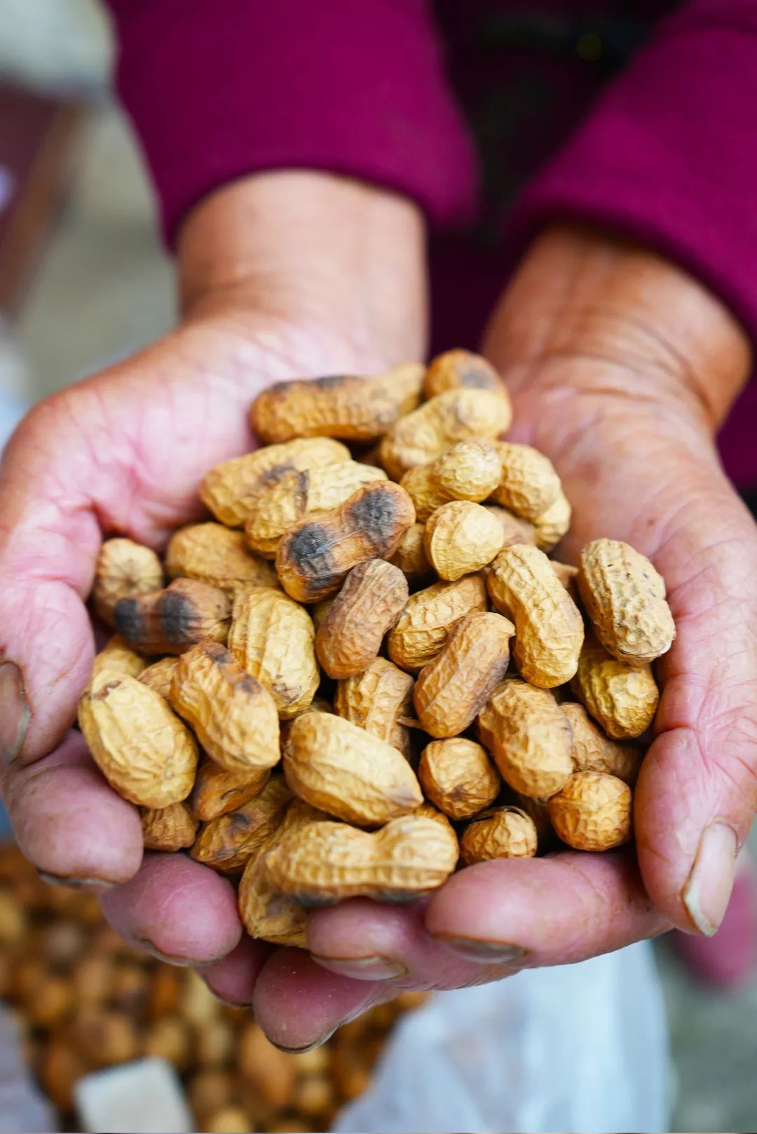 捧一大把炒花生、炒米果