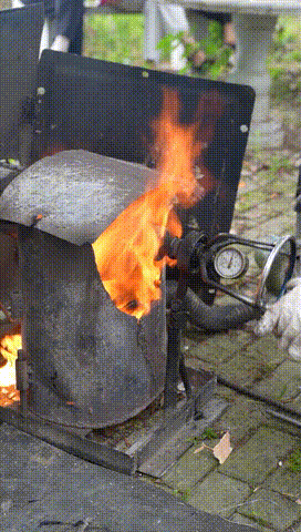 鼓風(fēng)機(jī)將煤球燒得通紅