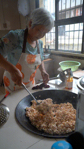 將糍粑捏成小團(tuán)兒壓入