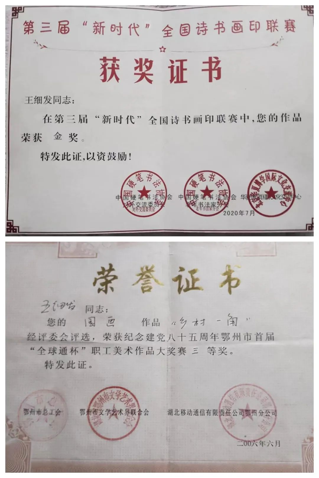 全國(guó)詩書畫印聯(lián)賽金獎(jiǎng)