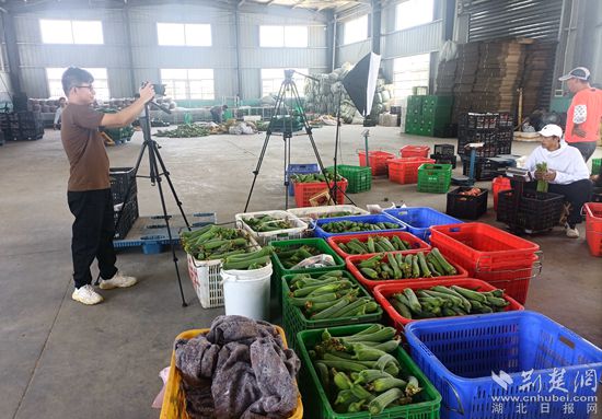 荊楚網(wǎng)(湖北日報(bào)網(wǎng))訊(通訊員尹宏偉)6月27日,黃州區(qū)堵城鎮(zhèn)葉路洲余嶺村的湖北福耕生態(tài)農(nóng)業(yè)發(fā)展有限責(zé)任公司蔬菜分揀倉庫里,公司負(fù)責(zé)人吳易翔正對著鏡頭,賣力地通過抖音直播帶貨。