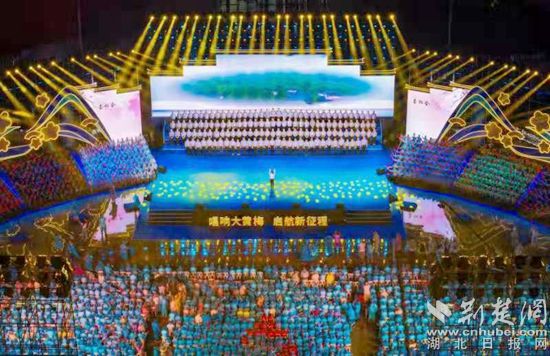 本屆黃梅戲藝術節(jié)的另一大特色是設立分會場。黃梅縣是千年古縣,更是黃梅戲藝術的發(fā)源地,本屆黃梅戲藝術節(jié)特別設置了黃梅縣分會場“唱響大黃梅”——一曲原創(chuàng)黃梅歌《靈潤黃梅》奏響演出序章,黨群口、宣傳口、教育口、政府口、政法口、小池鎮(zhèn)、孔壟鎮(zhèn)、黃梅鎮(zhèn)和全國戲迷等11個黃梅戲演唱方陣身著彩裝競唱黃梅戲經(jīng)典唱段,千余人齊唱《家在黃梅》,宏大的舞臺,震撼的現(xiàn)場,讓戲迷們著實過足了戲癮。