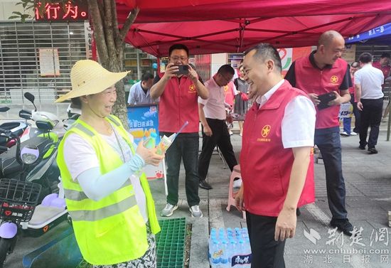 該活動得到紅安縣衛(wèi)健局的大力支持,蔡霖不僅提前與城管等部門溝通協(xié)調(diào)活動場地,還以普通志愿者的身份現(xiàn)場提供志愿服務(wù),“正值三伏天氣,快遞小哥、外賣小哥、環(huán)衛(wèi)工人等夏日街頭最為常見的勞動人群,都在戰(zhàn)高溫、斗酷暑,血站夏日送清涼活動正當(dāng)其時,為戶外作業(yè)職工提供一處累了可歇腳、渴了可喝水、熱了可納涼的好場所。”