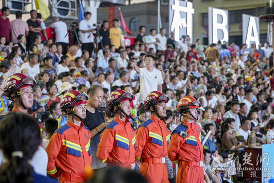 “沒想到來‘村BA’不僅能看到比賽,還能領(lǐng)到消防員送出的消防玩偶,這趟我可真是來對了!”前來觀看比賽的一名學(xué)生激動地說。本次活動,共發(fā)放“消防鈴鐺”玩偶100余個,消防安全宣傳單1000余份,現(xiàn)場受教育人數(shù)達4000余人,營造了濃厚的消防宣傳氛圍。