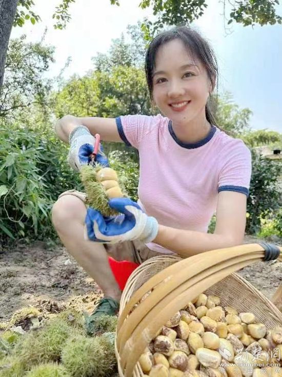 荊楚網(wǎng)(湖北日報(bào)網(wǎng))訊(通訊員 付言坤 龔思竹 高晗 )“大家好,我是蕭瀟,歡迎大家來到直播間,今天我給大家?guī)淼氖俏覀兞_田的板栗。羅田板栗被譽(yù)為百果之王,又脆又甜,吃起來糯香……”8月24日上午8時(shí),在自家屋后的板栗林里,羅田縣白廟河鎮(zhèn)唐家沖村女青年蕭瀟擺好三腳架及手機(jī),一邊用剪刀剝板栗刺球,一邊給粉絲推介家鄉(xiāng)的板栗。