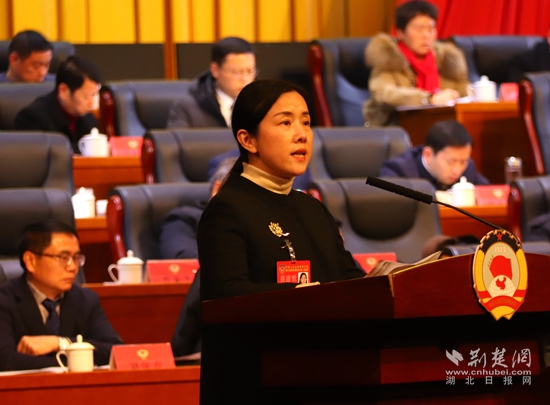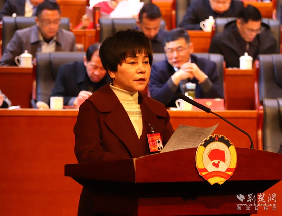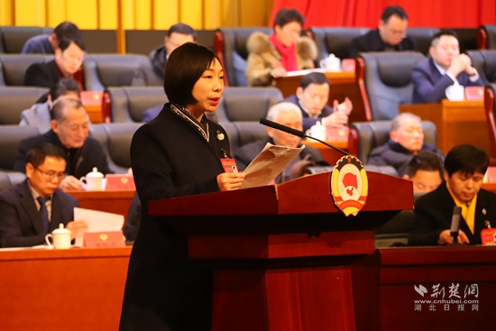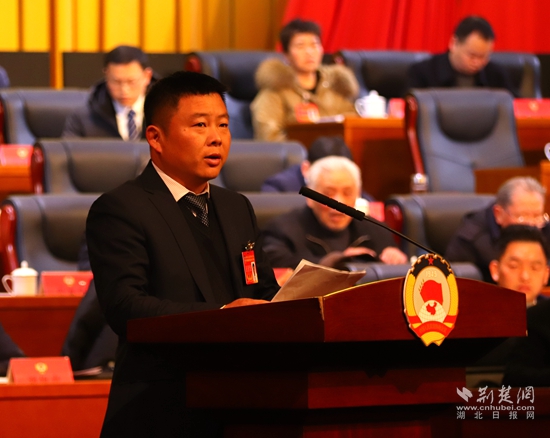 咸安區(qū)政協(xié)副主席雷春作提案工作報告。黃錚 攝