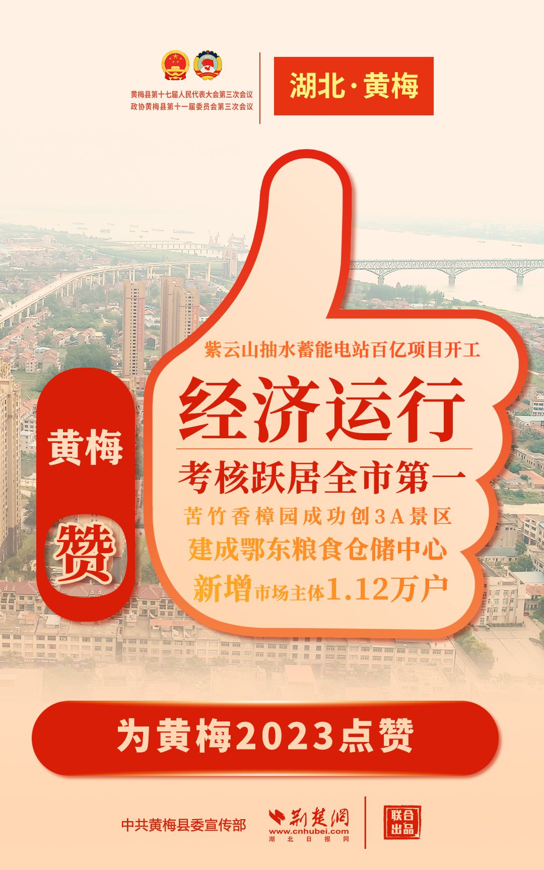 1月26日,黃梅縣第十七屆人民代表大會第三次會議上,縣長馬梁作政府工作報告。報告里,黃梅多項工作成績亮眼,一起為黃梅的2023點贊!